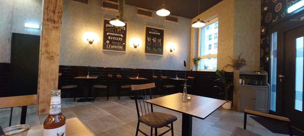 Vor Ort haben wir natürlich direkt gefragt, welcher Burger denn der Burger mit dem Extra-Käse ist: Es stellte sich heraus, dass es sich dabei um den gleichnamigen Burger des Restaurants handelte, den Two Hands Full Burger mit 3x Beefpatties, 3x Beefbacon, 3x Irish Cheedar, karamelisierten Zwiebeln und eben „lots of melted Cheese“. Wem das zu viel ist, der hat aber auch noch genug Auswahl ohne den Extra Käse-Burger: Bei den restlichen Burgern auf der Karte handelte es sich um klassische Burger, wie den Classic Cheese, Double Bacon oder Goat (mit Ziegenkäse und Cranberry Marmelade).