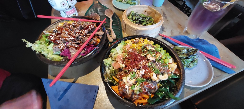 Unsere Bowls waren fantastisch. Erstmal waren die Portionen viel größer als wir erwartet hatten und die Bowls waren so geschmacksintensiv und frisch: Es war viel Gemüse dabei, aber seht selbst auf dem folgenden Foto. Wir waren beide total begeistert von unserer Auswahl.